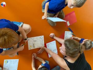 Povídali jsme si o tom, co nás v nadcházejícím školním roce čeká a jaké akce se připravují. Všechny děti obdržely nové učebnice a pracovní materiály a s velikou radostí jsme všem rozdali týmová trička v barvách naší školy.